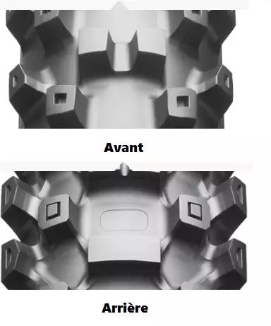 La technologie « Castle Blocs » permet une traction parfaite jusqu’au terrain meuble et rend plus efficace le fonctionnement du pneu.